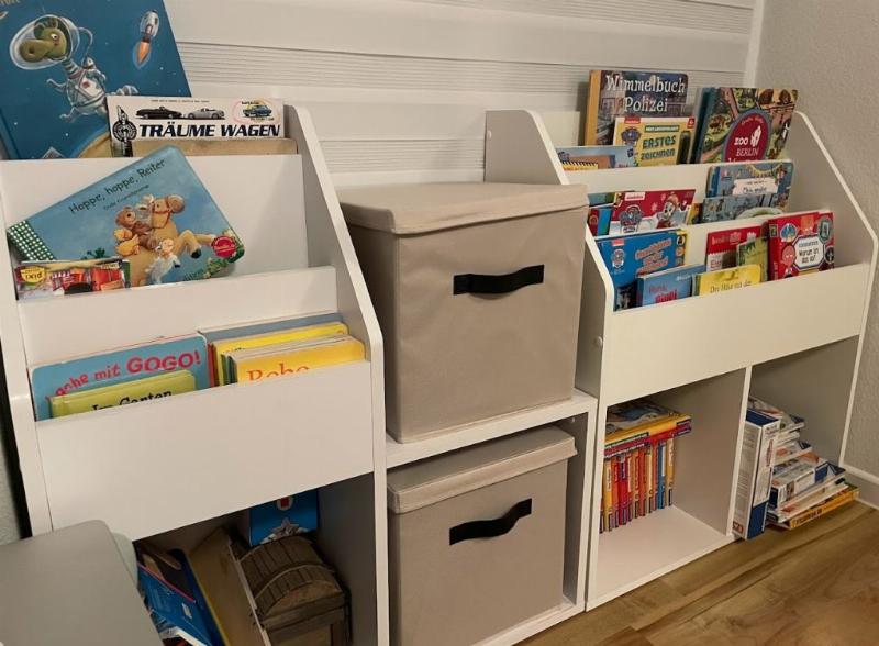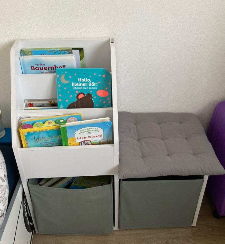 » Ich habe das Regal für die Spielecke unseres Enkels bestellt und es erfüllt seinen Zweck perfekt mit viel Stauraum. Was ich persönlich toll finde, ist, dass man die rechte Seite als Sitz nutzen kann. Das ist sehr praktisch für mich als Großmutter, wenn ich mit meiner Enkelin spiele.
