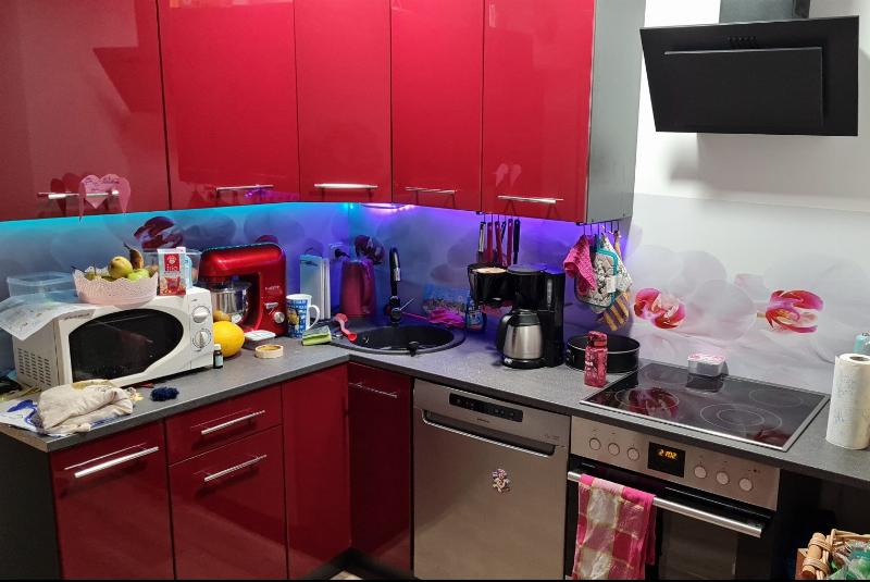 » Leider passen die Bohrlöscher nicht zu den übrigen Hängeschränken. So sind die Griffe tiefer wie beim Rest der Küche.