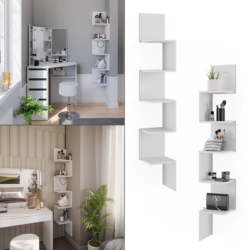 Mit dem Hängeregal Paolo treffen Sie eine gute Entscheidung für Ihre Wohnung. Sein optimales Design passt in jede Wohnung und sorgt für einen stilvollen Look.Das Bücherregal verfügt über mehrere Fächer für die Aufbewahrung von Büchern und anderen Gegenständen. Es ist stabil und einfach zu montieren.MAßE: Das hängende Wandregal mit 5 Fächern hat folgende Maße: Breite: 28 cm, Höhe: 175,4 cm, Tiefe: 28 cm.MATERIAL: Das Eckregal besteht aus pflegeleichter Spanplatte, 16 mm.LIEFERUMFANG: Eckregal x 2, Montageanleitung, MontagematerialDas Eckregal Paolo ist das perfekte Wohnaccessoire, um Ihre Lieblingsbücher, Dekorationen und Erinnerungsstücke stilvoll in Szene zu setzen. Mit diesem vielseitigen Wandregal können Sie Ihrem Wohnzimmer eine persönliche Note verleihen und gleichzeitig Platz sparen. Stellen Sie sich vor, wie dieses elegante Hängeregal Ihre Gäste beeindrucken wird, während Sie sie durch Ihre persönliche Bibliothek führen. Bringen Sie mit dem Paolo Eckregal Ordnung und Eleganz in Ihr Zuhause und schaffen Sie eine gemütliche Atmosphäre zum Entspannen und Genießen.---Technische Details:Farbe:WeißMaße:28 x 175.4 x 28 cm (BxHxT)Material:Spanplatte, 16 mmArtikelgewicht:18.4 kgArtikelgewicht inkl. Verpackung:20.4 kg---LIEFERUMFANG: Eckregal x 2, Montageanleitung, MontagematerialDie Möbelserie "Paolo" umfasst Wandregale in verschiedenen Farbkombinationen sowie die Möglichkeit, sowohl einzelne Einheiten als auch Sets zu wählen. Mit ihrem flexiblen Design bieten diese Regale eine praktische und stilvolle Lösung zur Aufbewahrung und Präsentation von Gegenständen.