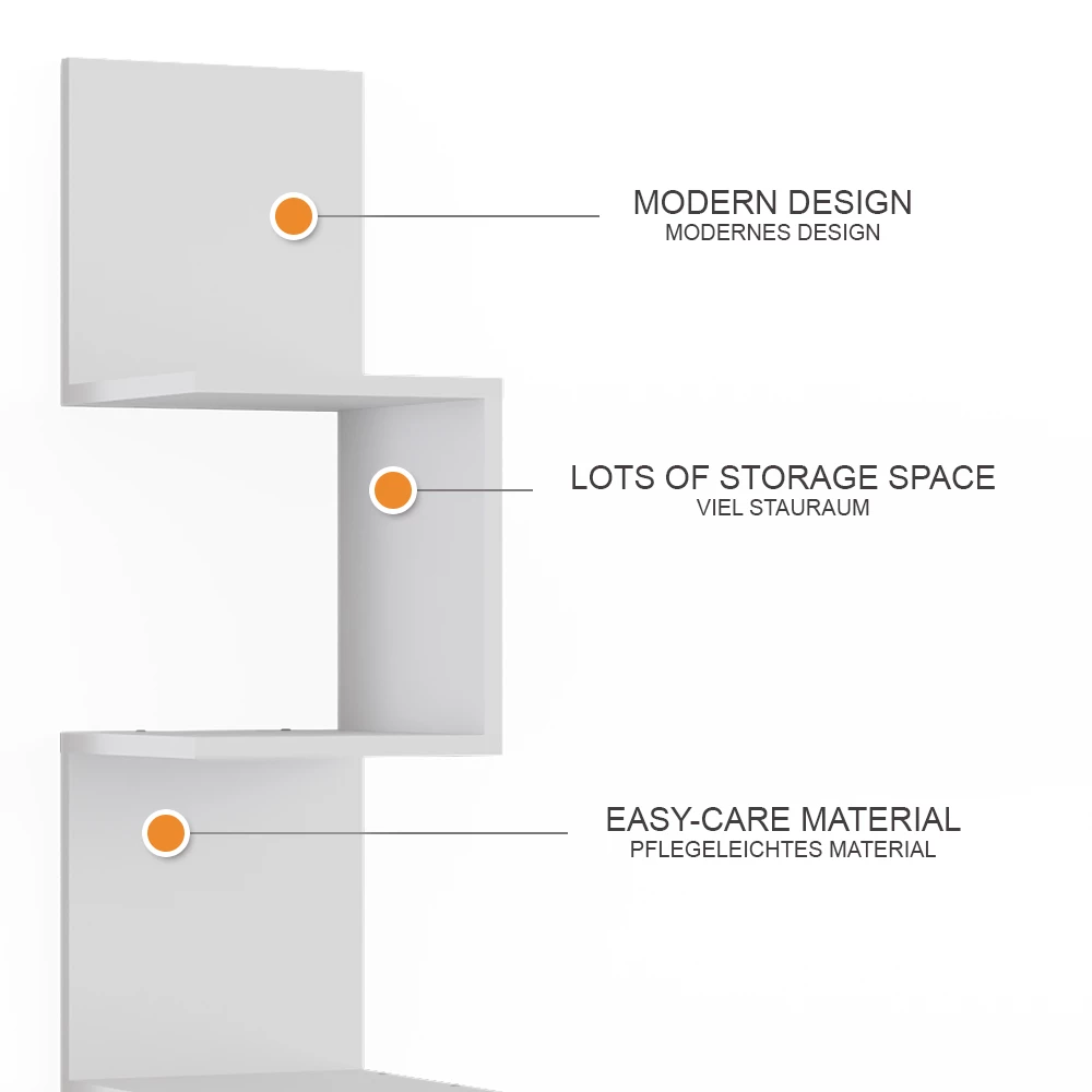 - MATERIAL: Das Eckregal besteht aus pflegeleichter Spanplatte, 16 mm.