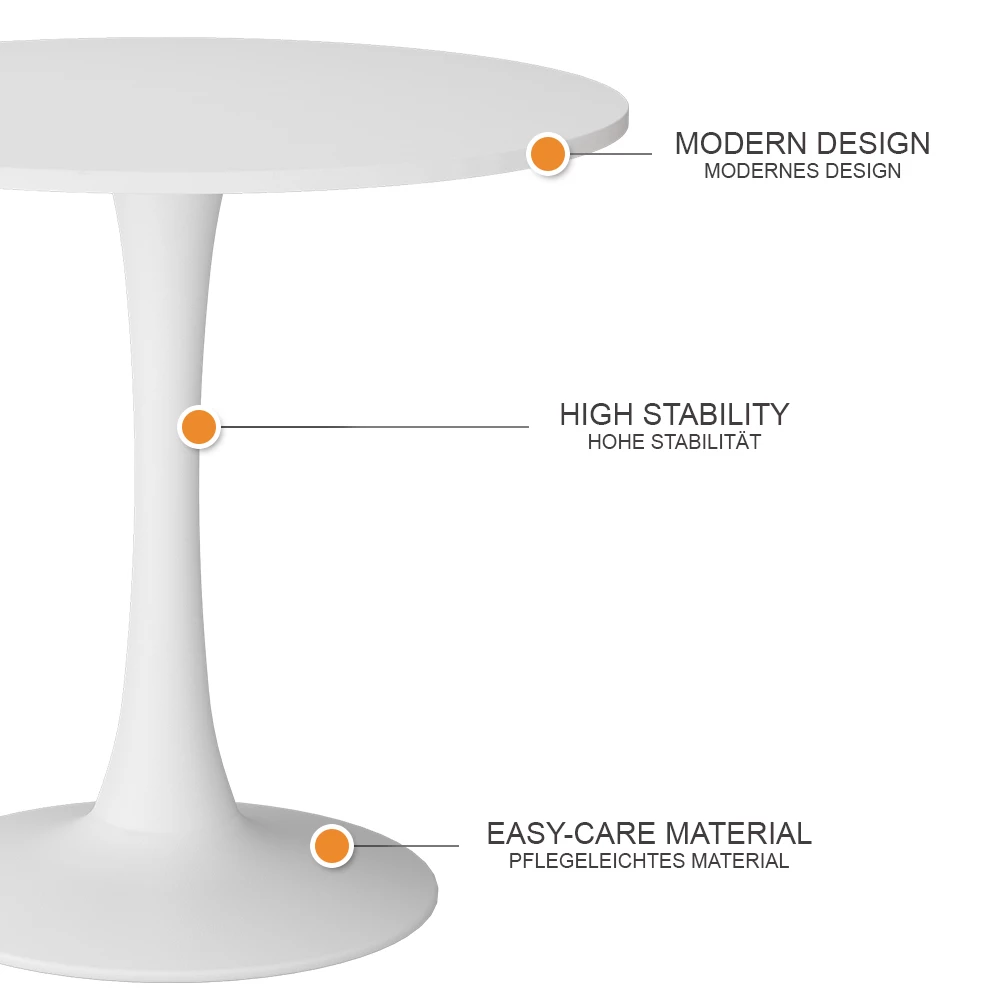 - MAẞE: Der runde Küchentisch hat eine Tischplatte mit einem Durchmesser von 80 cm und eine Höhe von 74 cm. Die genauen Maße sind auf den Fotos ersichtlich.