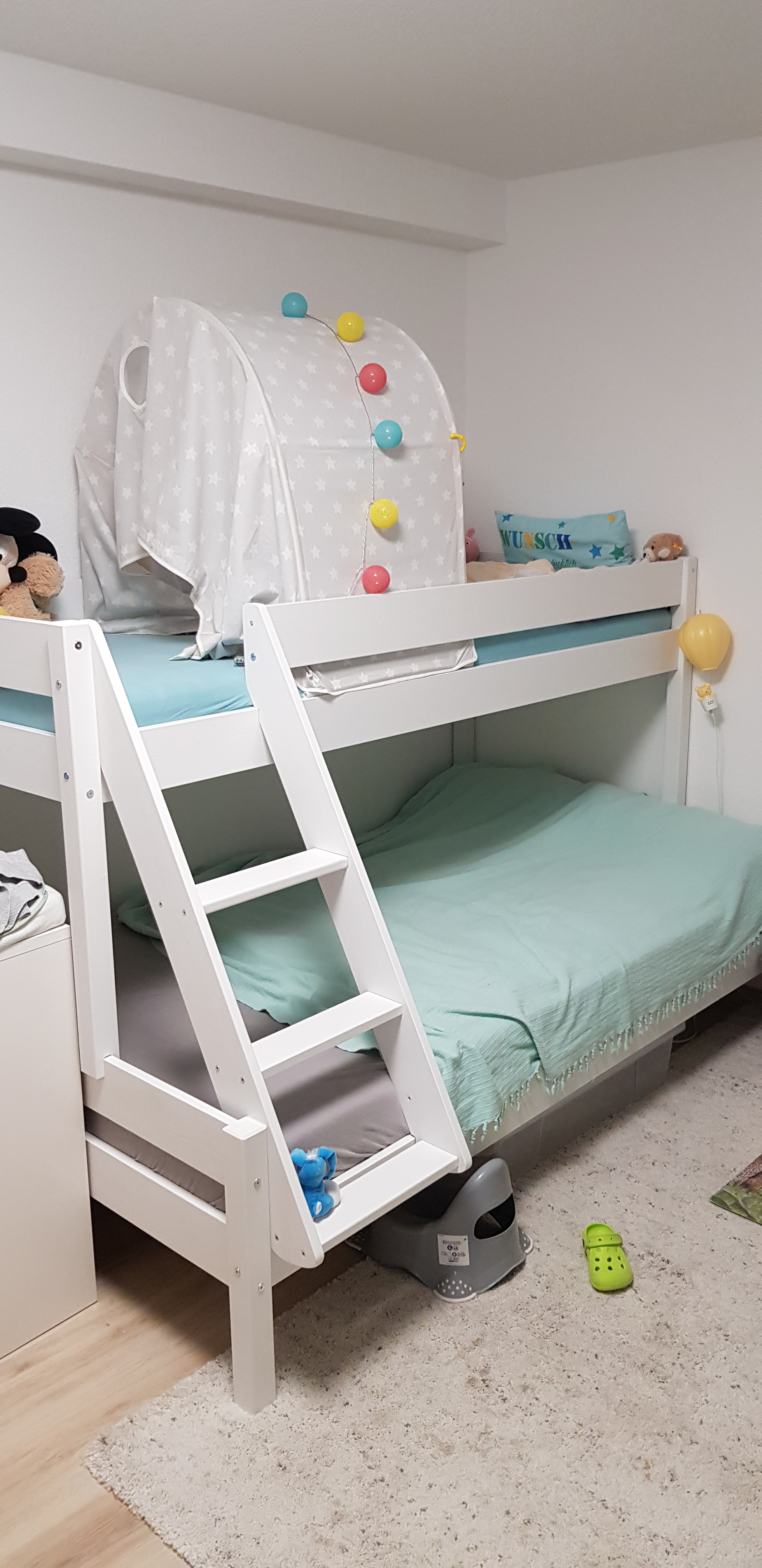» Tolles Doppelstockbett, dass durch die versetzen Etagen echt cool aussieht.