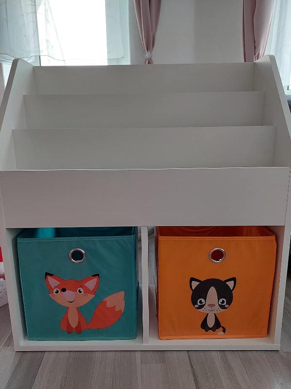 - LIEFERUMFANG: Kinderregal, 2x Faltbox, Montageanleitung, Montagematerial.