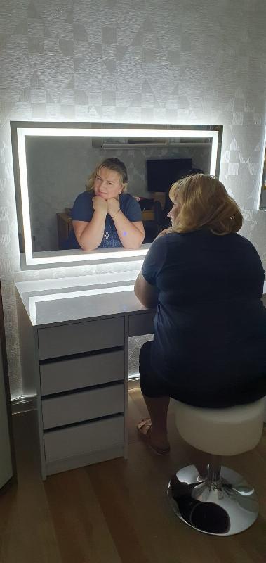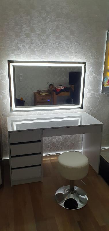 » Sehr schöner und edler Kosmetiktisch . ich bin sehr glücklich und zufrieden mit dem Tisch . Der LED Spiegel sieht auch top aus 😍