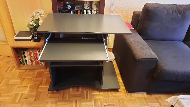 - Der Arbeitstisch für das Büro ist perfekt für kleine Räume geeignet und verfügt über eine ausziehbare Tastaturablage sowie praktische Laufrollen.