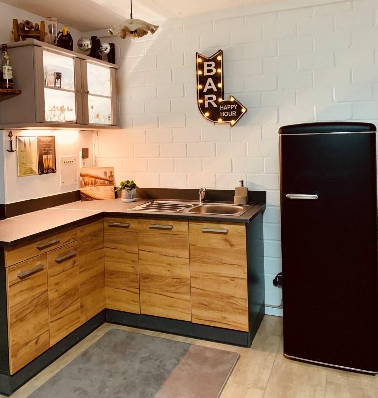 - Der Küchenunterschrank für die Spüle ist modular und umstellbar. Zusätzliche Module können hinzugefügt werden und die Füße sind höhenverstellbar.