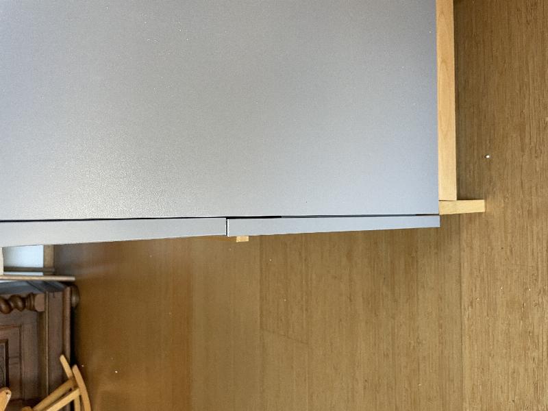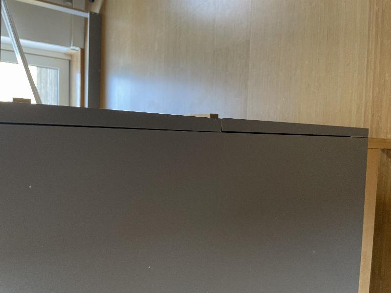 » Troede jeg havde købt en fint puslebord, men det er simpelthen så skævt, at det er svært at samle, der er en lang flække i fineren på den øverste plade